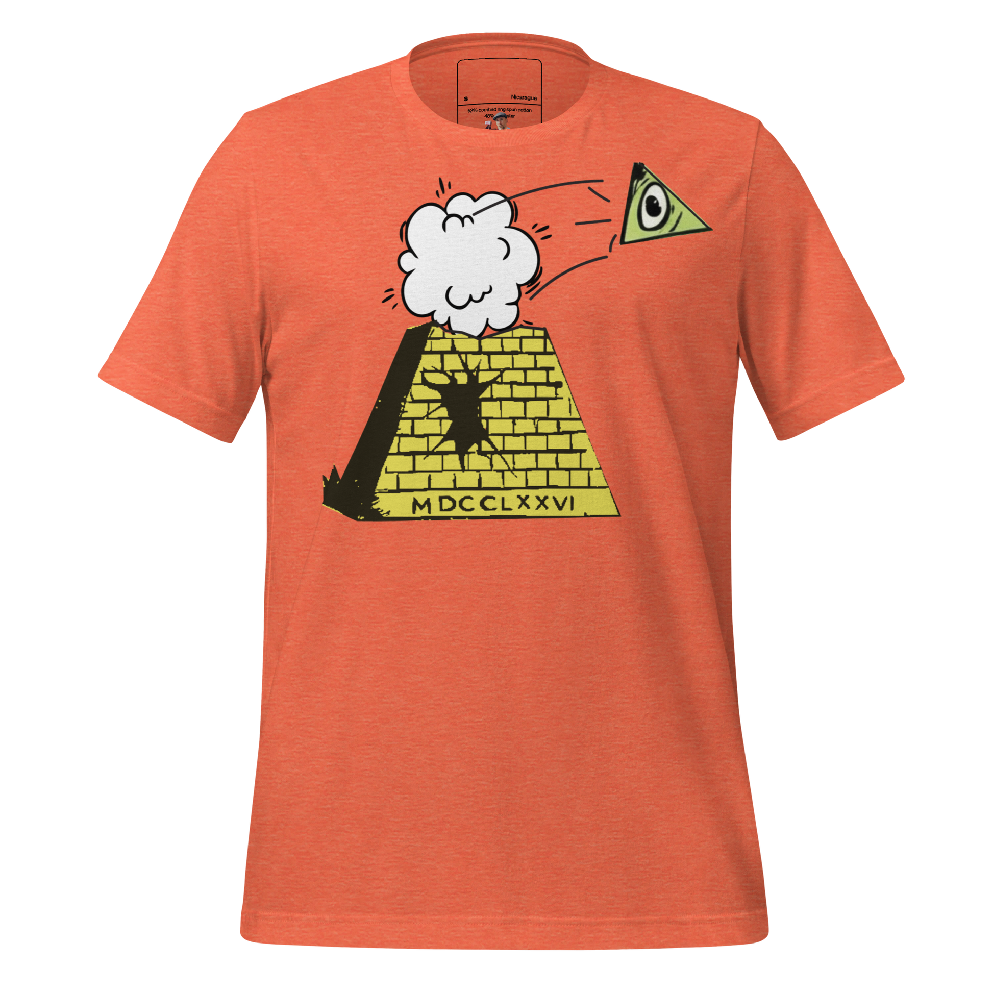 This design is a psychedelic war cry, bursting with untamed energy! Picture a rugged yellow excavator hurling a wrecking ball into a crumbling pyramid etched with "MDCCLXXVI" (1776), its shadowy figure shattering under the impact, while a piercing green all-seeing eye glares from above. Flanked by the iconic leaning Tower of Pisa, a bold cannabis leaf, hovering UFOs, and a cosmic sky ablaze with vibrant waterfalls and swirling planets, the scene pulses with rebellious fervor. Framed by scroll-like accents, the bottom roars with "FUCK THE NEW WORLD ORDER" in bold black letters – a gritty, cartoonish anthem of resistance against the establishment. Snag this electrifying masterpiece from stayhighlypositive.com and wear your revolution loud and proud! Available now – don’t let it slip away!